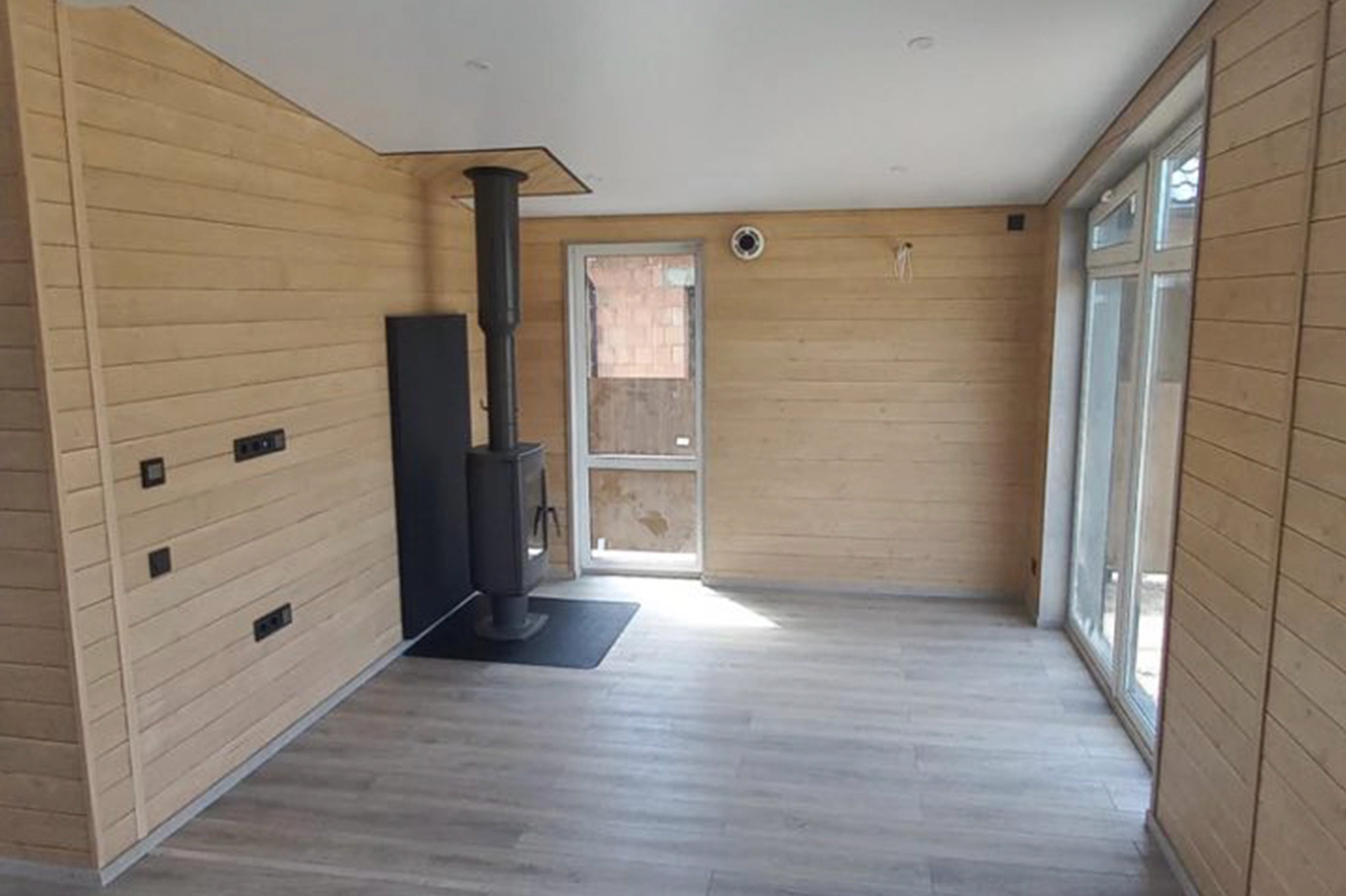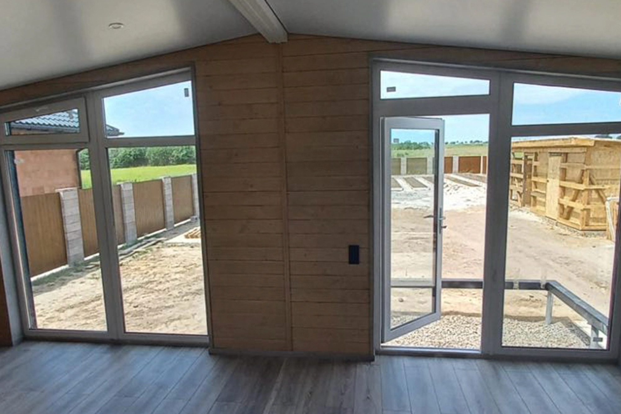 Повністю готовий будинок із преміальним ремонтом. Стіни оздоблені гіпсокартоном та фарбовані у відтінки, вибрані за палітрою зимовника. Встановлені вікна та двері вищого стандарту. Проект передбачає місце для установки каміну, створюючи атмосферу затишку та розкоші.