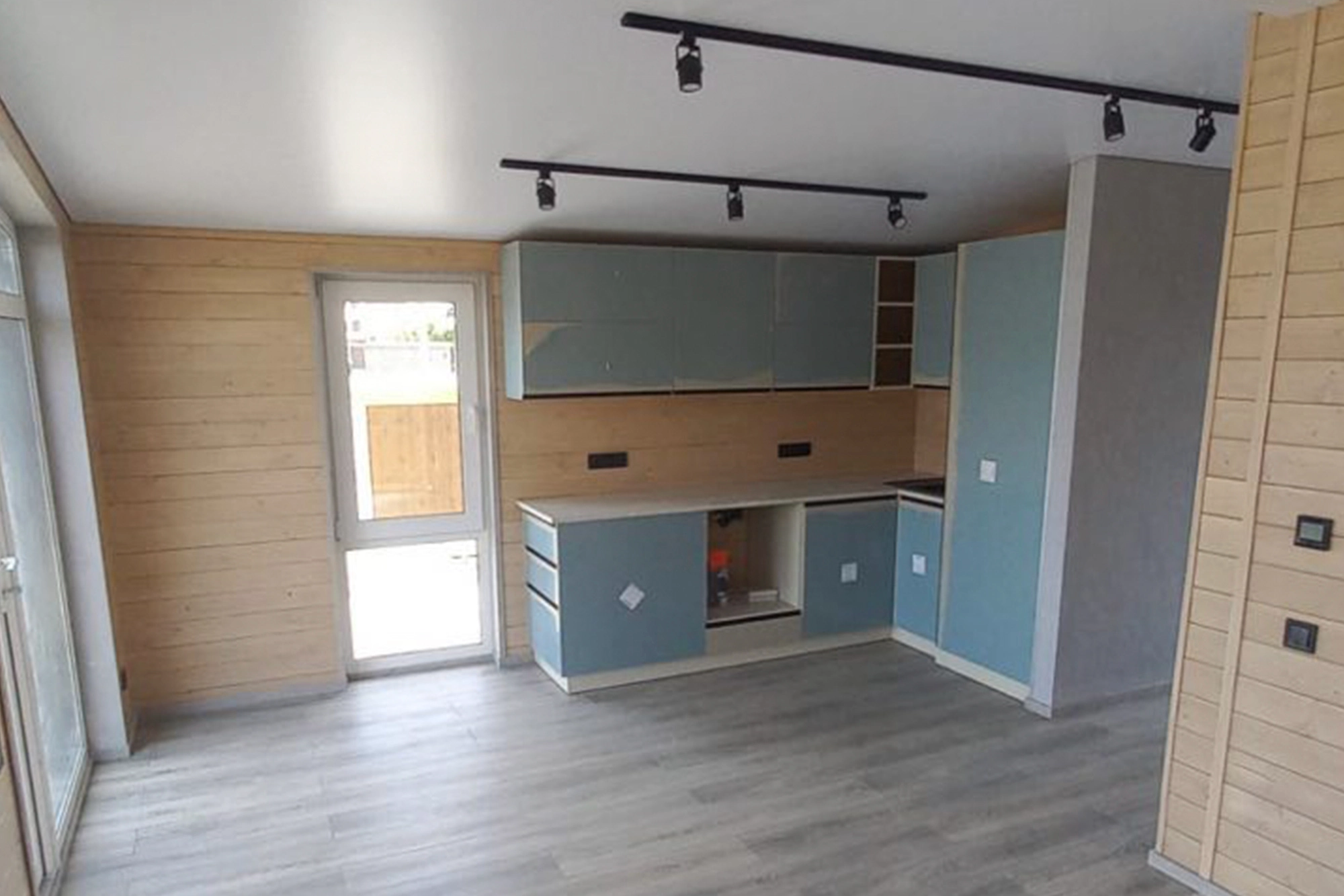 Готовий будинок з виконаним ремонтом. Стіни оздоблені імітацією бруса смереки, підлога вкрита ламінатом, стеля — натяжна “біла матова”. Санвузол прикрашений керамічною плиткою. Встановлене всі освітлення та електрофурнітура.